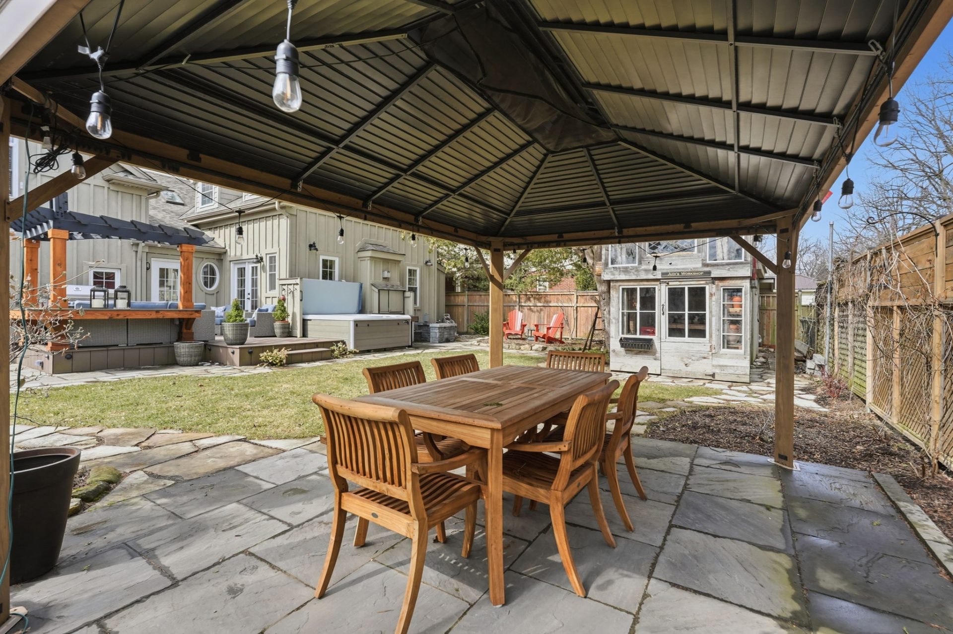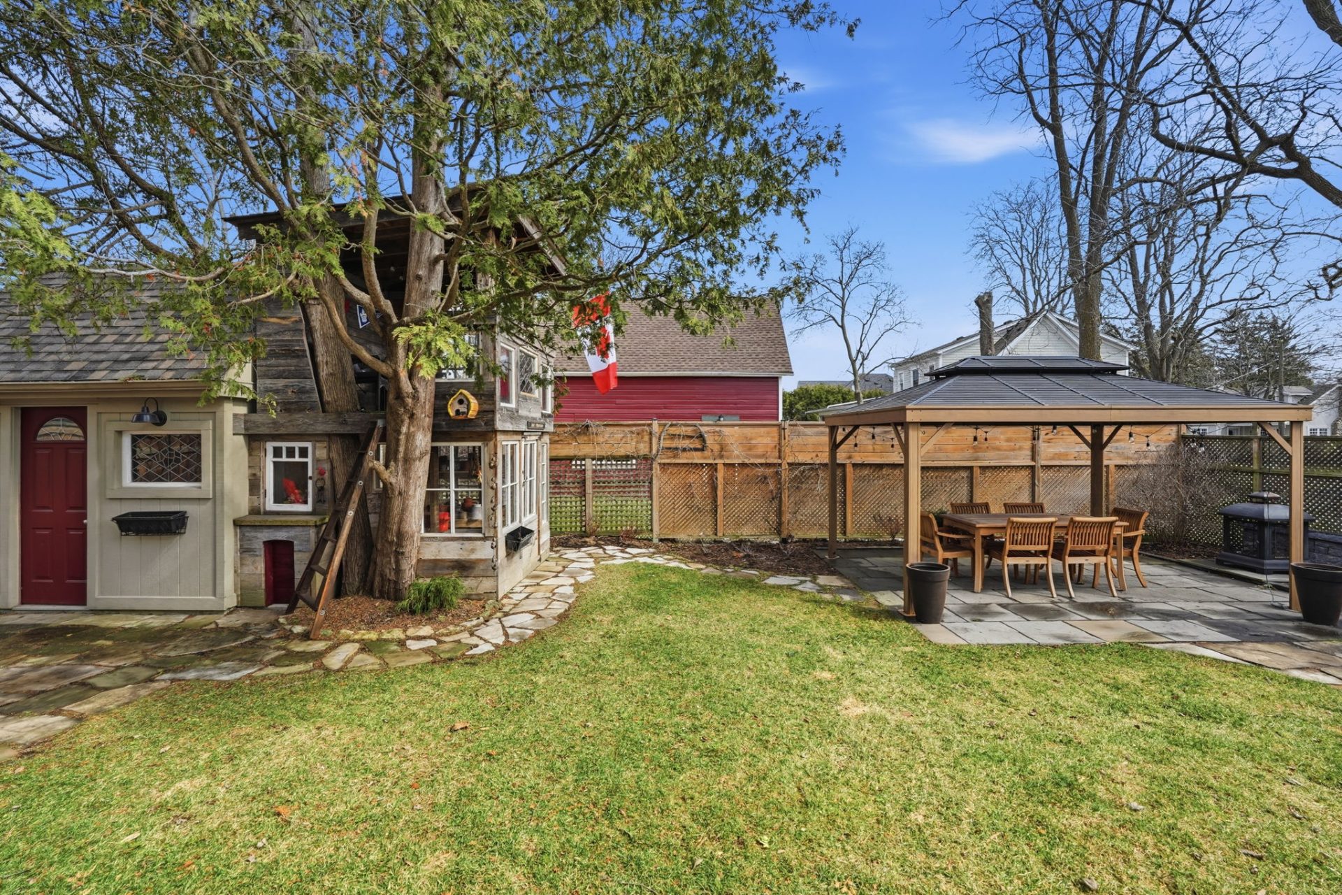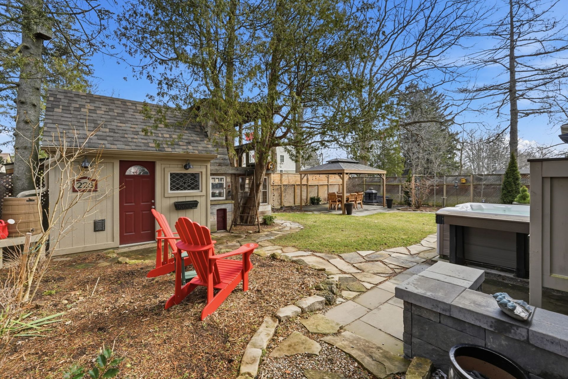 Remarkable circa-1890s home in the heart of Waterdown Village, thoughtfully expanded in 2010 with a substantial addition and attached double garage. This rare offering blends modern updates with timeless character, showcasing custom finishes and carefully preserved original details. The beautifully designed kitchen features quartz countertops, stainless steel appliances, a large island with prep sink, and refinished original plank flooring. Open to the dining area with a cozy gas fireplace, it creates an inviting space for both everyday living and entertaining. The main level also offers a spacious great room with custom built-in cabinetry, a second gas fireplace, and a walkout to the backyard, along with a powder room, mudroom, and convenient inside access to the garage. Upstairs, the home is uniquely configured with two separate wings, offering 4 bedrooms, 3 full bathrooms, a laundry area, and dedicated office space. The primary suite is a true retreat with a vaulted ceiling, oversized walk-in closet, updated flooring, and a 4-piece ensuite. A finished basement provides additional living space, while the fully fenced backyard is a private retreat featuring a deck with pergola and sunshade, hot tub, patio with gazebo, and a custom shed with workbench, tree fort, and potting shed below—ideal for relaxing or entertaining. Rich in history, the home was originally built in the 1890s and relocated in the 1920s, with deep roots in the community. Ideally located within walking distance to shops, restaurants, pubs, grocery stores, and everyday amenities, this home offers true village living. Enjoy local events like Waterdown’s annual Ribfest, Santa Claus Parade, and nearby Memorial Park with its popular skating loop. Commuters will appreciate quick access to Aldershot GO Station and Hwy 403 (approx. 10–15 minutes). A truly special home in one of Waterdown’s most sought-after, community-oriented neighbourhoods.