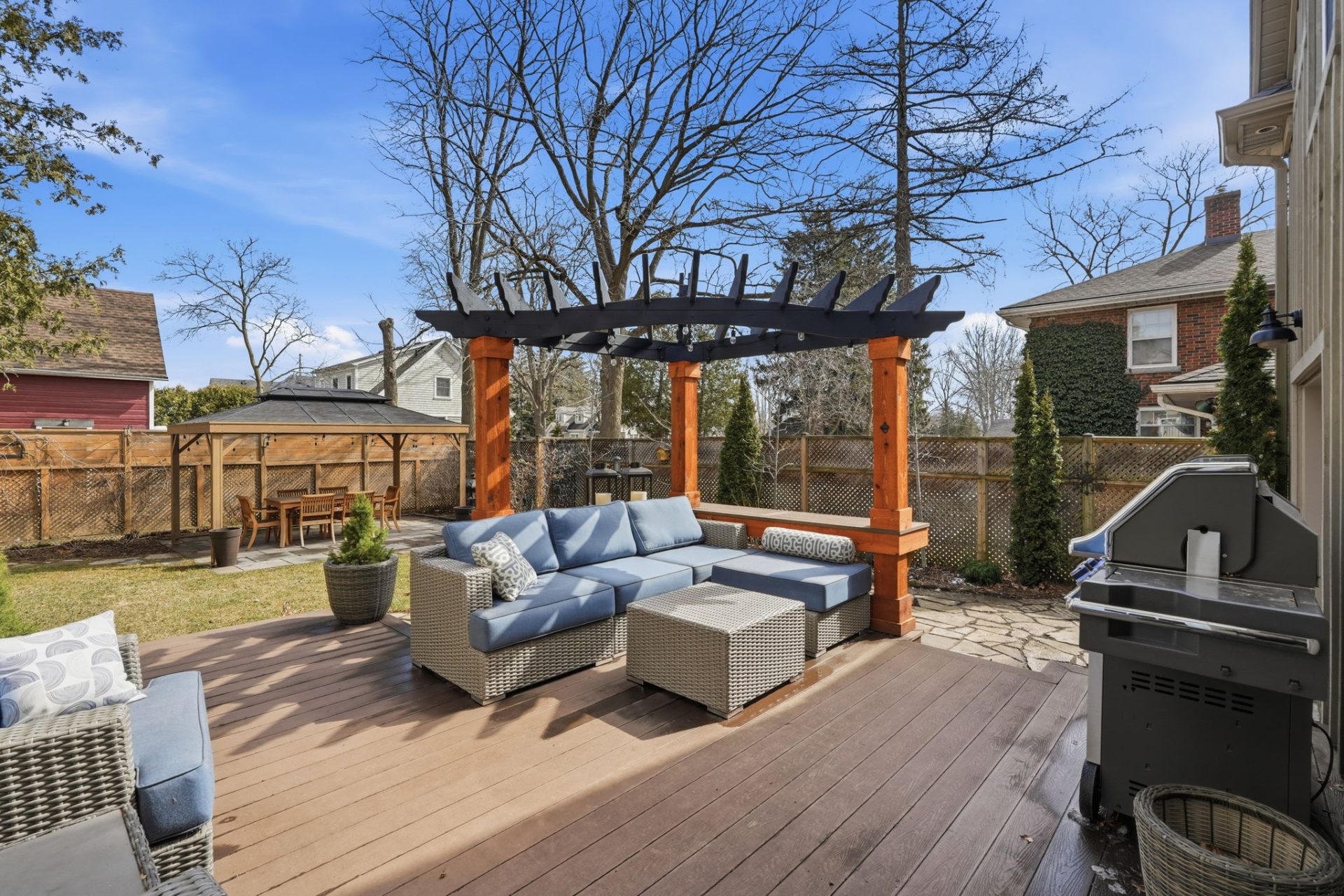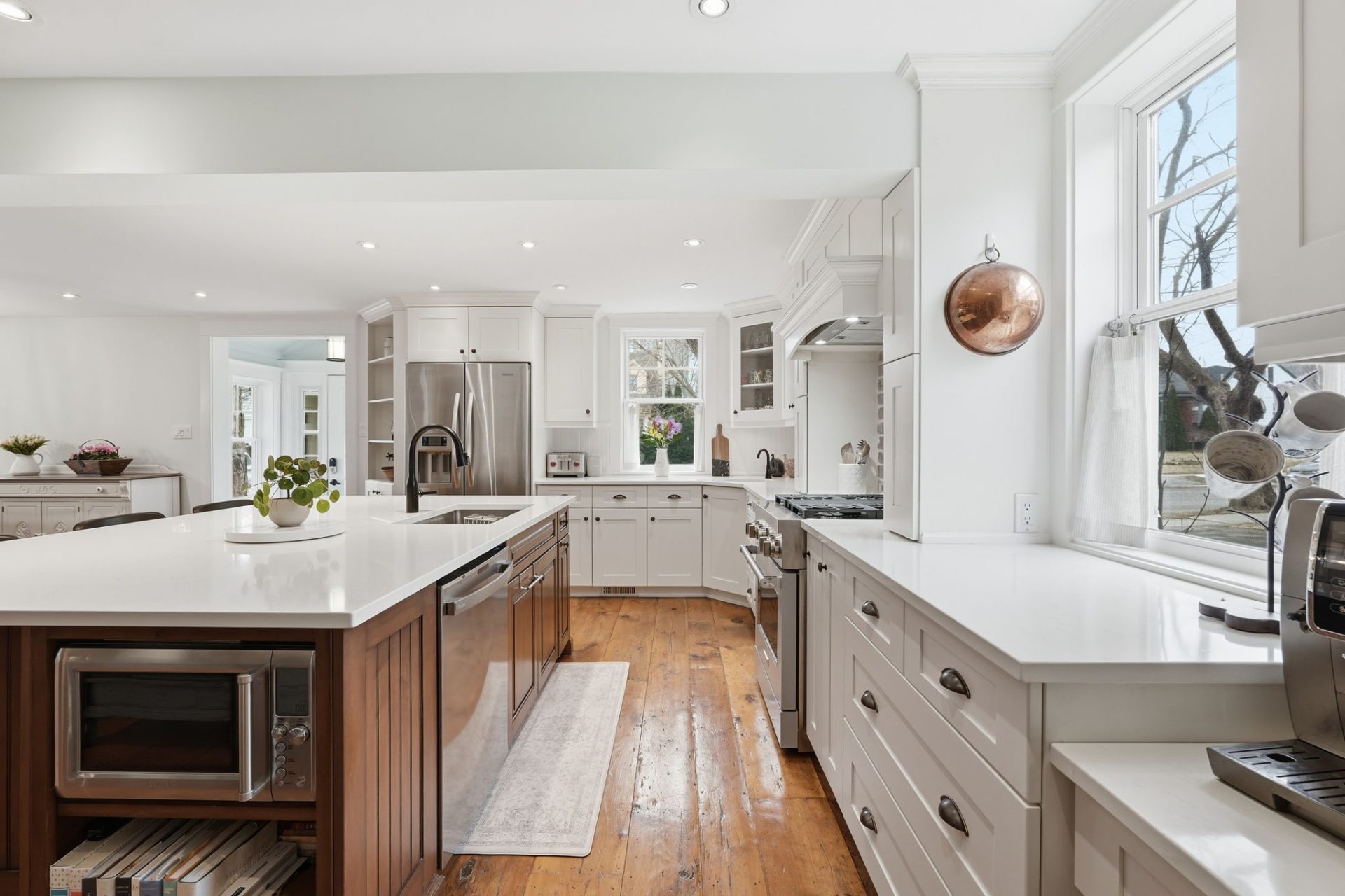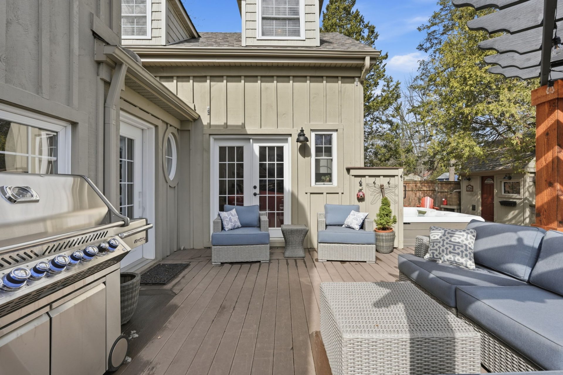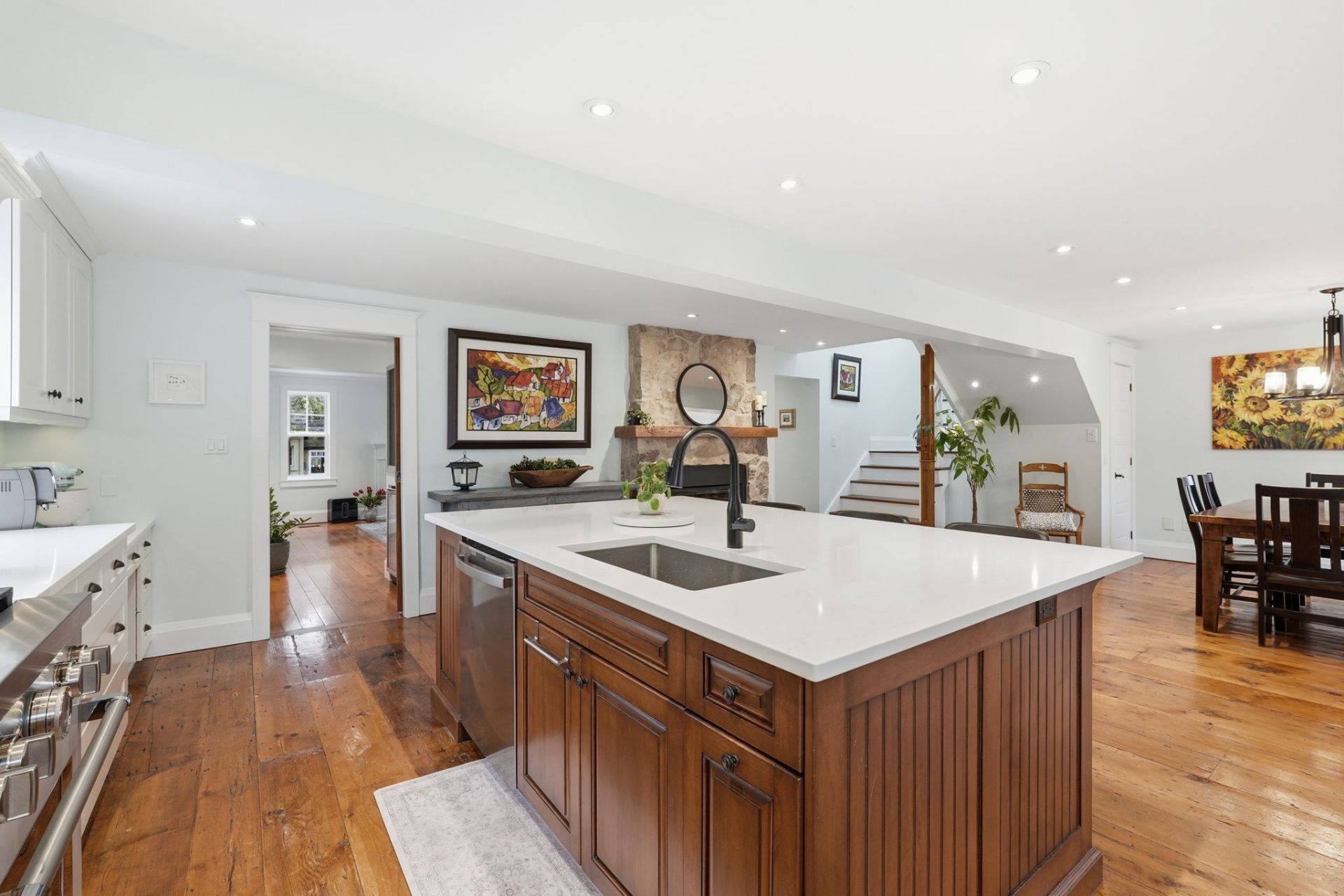 Remarkable circa-1890s home in the heart of Waterdown Village, thoughtfully expanded in 2010 with a substantial addition and attached double garage. This rare offering blends modern updates with timeless character, showcasing custom finishes and carefully preserved original details. The beautifully designed kitchen features quartz countertops, stainless steel appliances, a large island with prep sink, and refinished original plank flooring. Open to the dining area with a cozy gas fireplace, it creates an inviting space for both everyday living and entertaining. The main level also offers a spacious great room with custom built-in cabinetry, a second gas fireplace, and a walkout to the backyard, along with a powder room, mudroom, and convenient inside access to the garage. Upstairs, the home is uniquely configured with two separate wings, offering 4 bedrooms, 3 full bathrooms, a laundry area, and dedicated office space. The primary suite is a true retreat with a vaulted ceiling, oversized walk-in closet, updated flooring, and a 4-piece ensuite. A finished basement provides additional living space, while the fully fenced backyard is a private retreat featuring a deck with pergola and sunshade, hot tub, patio with gazebo, and a custom shed with workbench, tree fort, and potting shed below—ideal for relaxing or entertaining. Rich in history, the home was originally built in the 1890s and relocated in the 1920s, with deep roots in the community. Ideally located within walking distance to shops, restaurants, pubs, grocery stores, and everyday amenities, this home offers true village living. Enjoy local events like Waterdown’s annual Ribfest, Santa Claus Parade, and nearby Memorial Park with its popular skating loop. Commuters will appreciate quick access to Aldershot GO Station and Hwy 403 (approx. 10–15 minutes). A truly special home in one of Waterdown’s most sought-after, community-oriented neighbourhoods.